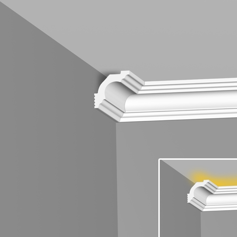 Потолочный плинтус — декоративная планка для финишной отделки. Этот плинтус подходит для натяжного потолка и светодиодной подсветки.Делает оформление жилых комнат завершенным и аккуратным, скрывает несовершенства на стыке стен и потолка, обозначает четкую границу между ними. Сохраняет свой первоначальный внешний вид продолжительное время. Может применяться как самостоятельный декоративный элемент стен, покрытых краской или обоями.