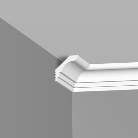 Потолочный плинтус — декоративная планка для финишной отделки. Этот плинтус идеально подходит для натяжного потолка. Делает оформление жилых комнат завершенным и аккуратным, скрывает несовершенства на стыке стен и потолка, обозначает четкую границу между ними. Сохраняет свой первоначальный внешний вид продолжительное время. Может применяться как самостоятельный декоративный элемент стен, покрытых краской или обоями.