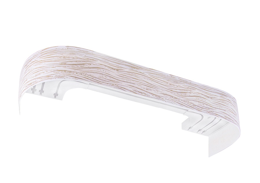 Карниз для штор трезрядный потолочный купить в Москве - современный дизайн тиснения эффектно сочетается с плавными линиями в дизайне обоев или портьер. Яркие переливы выгодно подчеркивают светлые портьеры в бежевых тонах. Сочетание карниза с портьерами темных коричневых оттенков создаст гармоничный образ.