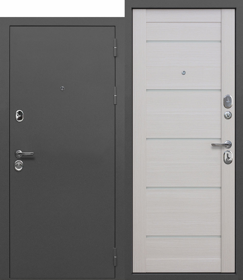 --Дверь входная 9 см металл/МДФ серебро царга лиственница беж 960 мм правая FERRONI