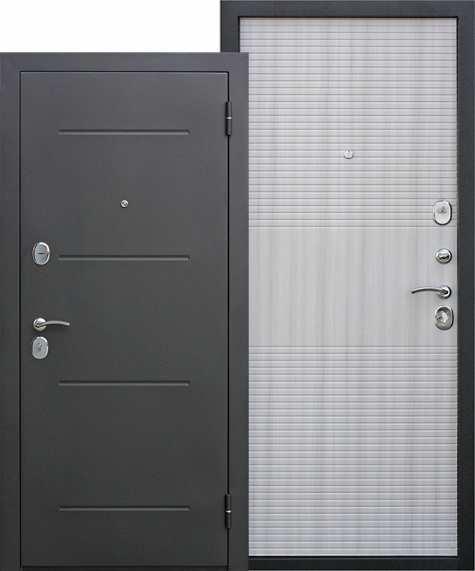 --Дверь входная 7,5 см металл/МДФ антик серебро белый ясень 960 мм левая FERRONI