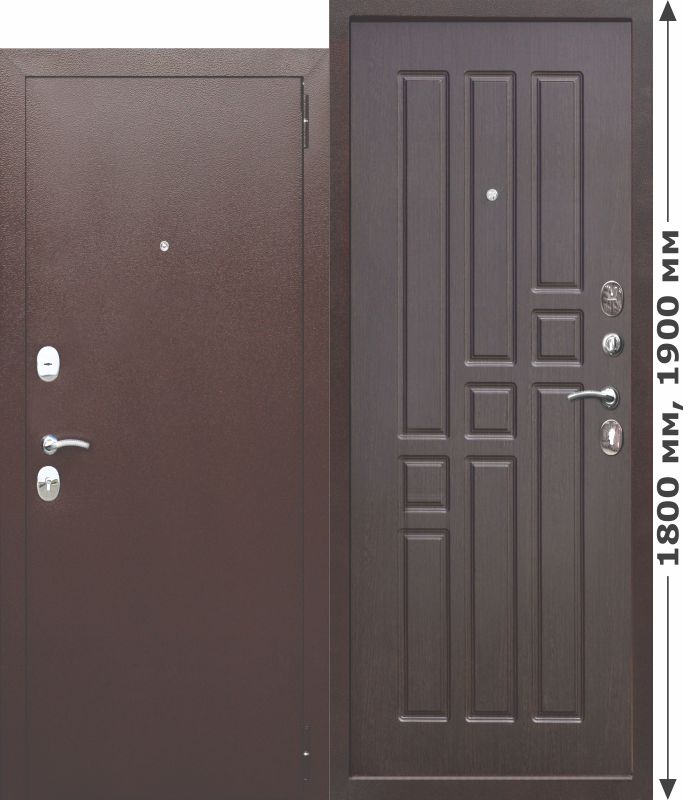 Комплектуется раздельной ручкой цвета хром, глазком широкого обзора цвета хром, петли: 2 шт., наружные, открывание 180°. Основной замок цилиндровый BORDER, 3-я серия. Дополнительный замок: сувальдный BORDER, 3-я серия. Есть ночная задвижка. - Отзывы