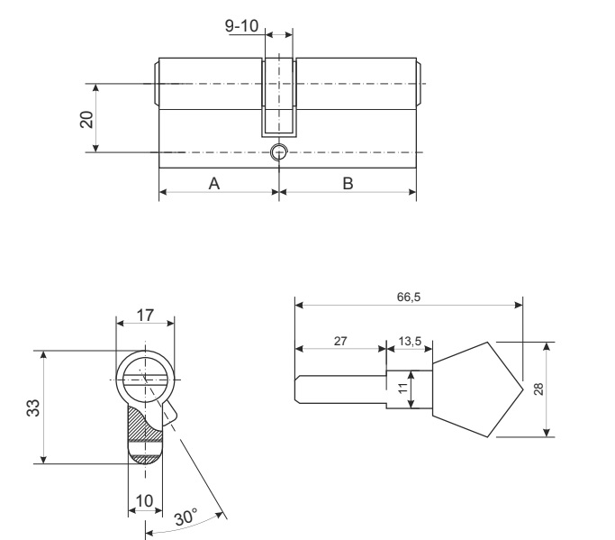 ---Цилиндровый механизм AVERS 60 мм (25+10+25) G золото