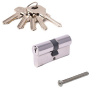 ОписаниеЦилиндры серии SC с английским ключом. Сертифицированы на 2-й класс по ГОСТ Р 5089-2011. Два опорных пина с проточкой для защиты от вскрытия отмычками. Запатентованная защита от бампинга. Два закаленных штифта в сердечнике и штифт в торце корпуса для защиты от высверливания. Теоретическая секретность: 46 656