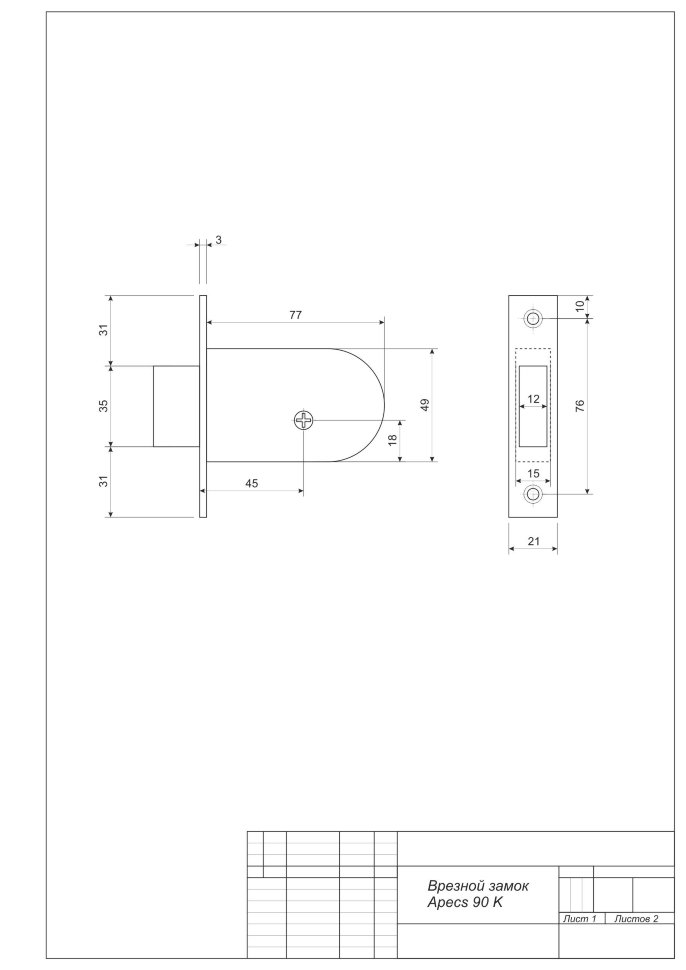 Врезной замок APECS 90-K-CR устанавливается в межкомнатные или входные двери. Механизм устанавливается за лицевую планку при помощи крепежа, который идет в комплекте. Покрытие планки - гальваника. В комплекте с механизмом идет 5 ключей.