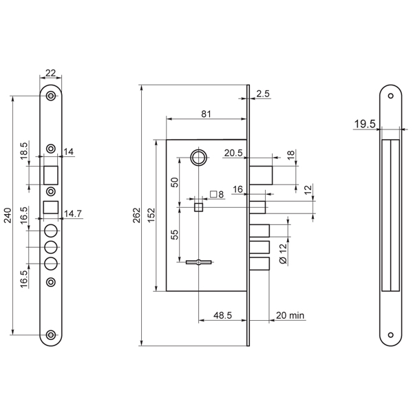 Замок врезной левый медь BORDER ЗВ9-8.3/13 88011