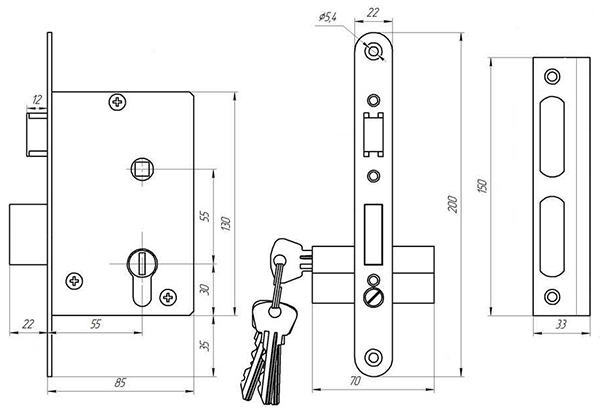 Замок врезной цилиндровый ЗВ4-3.07 предназначен для установки в деревянные и металлические двери толщиной 40-55 мм, правого и левого открывания. Верхняя реверсивная защелка приводится в действие ручкой или цилиндровым механизмом. Прямоугольный ригель с ходом 22 мм. Корпус замка выполнен из стали, ручки на планке из алюминия с декоративным финишным покрытием. Цвет: медь. Количество секретных комбинаций: 15 000 . Преимущества замка: простая, надежная конструкция; невысокая стоимость. В комплектацию входят: замок, ручки на планке, цилиндровый механизм 70 мм, 4 ключа, ответная планка и крепежная фурнитура.