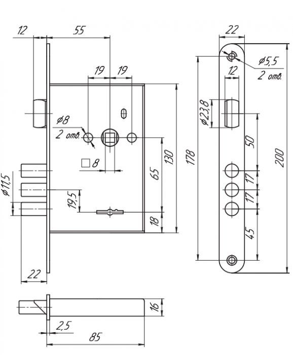 ---Замок врезной универсальный хром МЕТТЭМ ЗВ9 902.0.0
