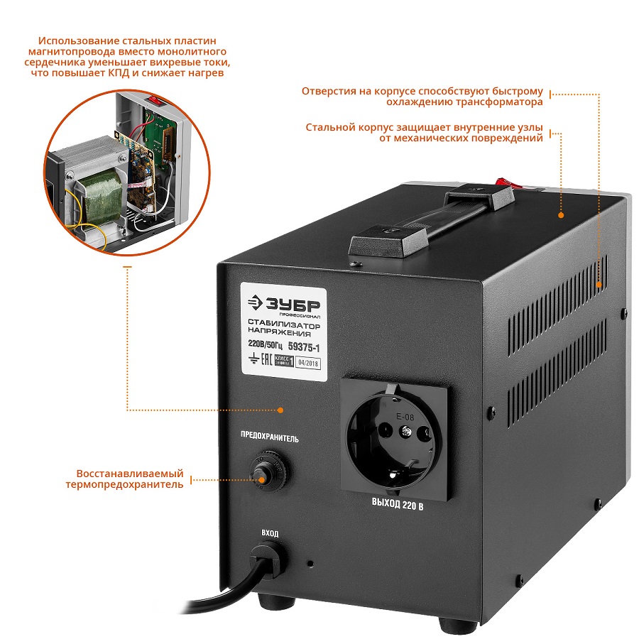 Автоматический стабилизатор с цифровой индикацией ЗУБР предназначен для обеспечения стабильным напряжением подключенных к нему устройств. Широко используется в бытовых и промышленных сферах для защиты техники от аварийных скачков электроэнергии.