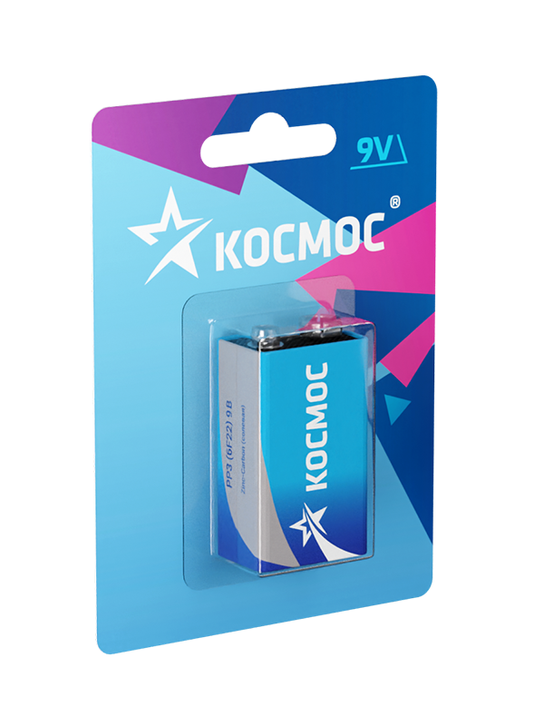 Батарейка 9V солевая КОСМОС