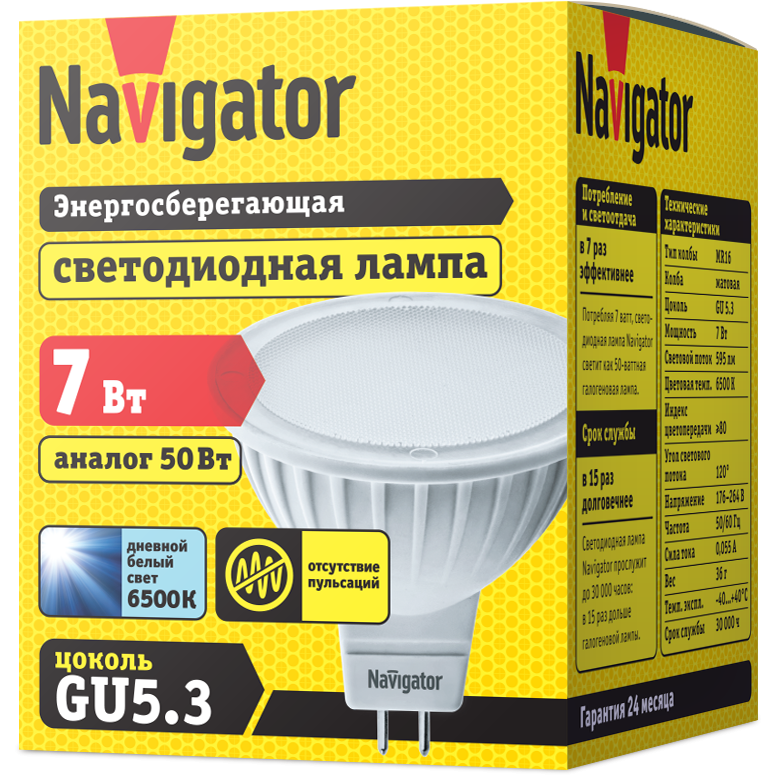 Лампа светодиодная GU5.3 7 Вт 6500К дневной NAVIGATOR