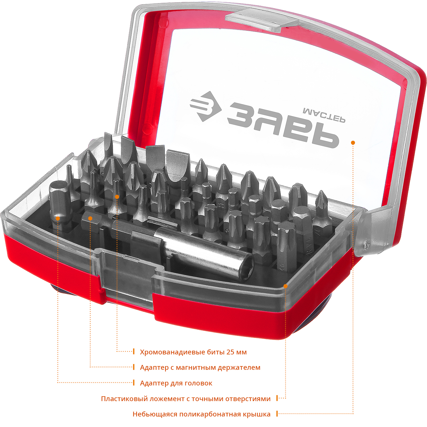 Набор бит с адаптером в пластиковом боксе (32 предмета) ЗУБР