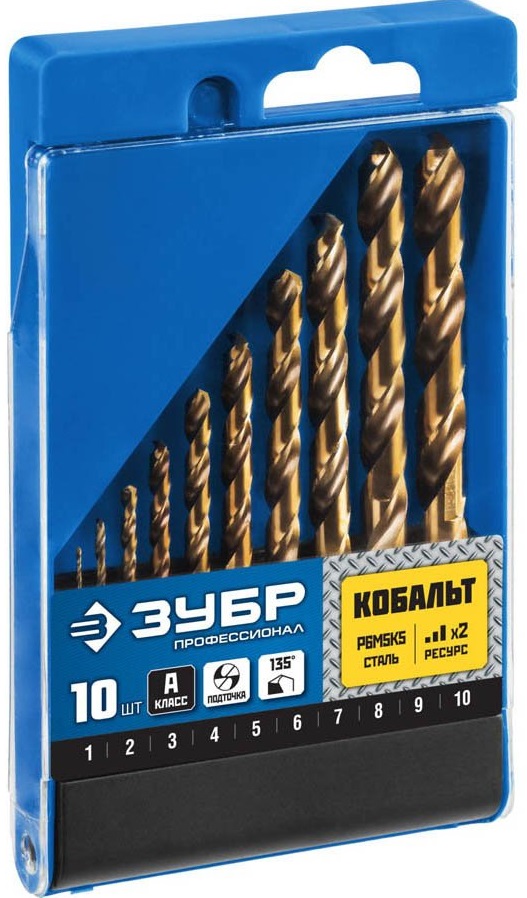---Набор сверл по металлу Р6М5К5 (10 шт) ЗУБР Профи Кобальт