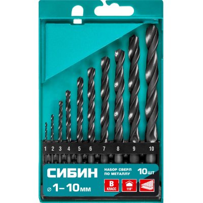 ---Набор сверл по металлу 1-10 мм Р6М5 (10 шт) СИБИН