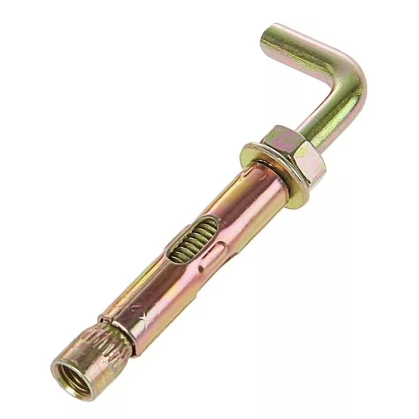 Анкерный болт с крюком применяется для установки светильников, водонагревателей и других тяжелых предметов, которые есть необходимость снимать. Изготовлен из стали. Состоит из винта в виде крюка, гайки, расположенной под винтом и трубки. Обеспечивает прочное крепление.