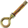 Анкерный болт с кольцом применяется для монтажа в плотное основание (бетон, полнотелый кирпич, строительный камень) подвесных конструкций. Его используют для крепления ответственных тяжеловесных изделий (створки ворот, строительные леса, тяжелые люстры и т.д.), поскольку анкер выдерживает большие нагрузки и отличается высокой надежностью. Состоит из шпильки с кольцом на конце, втулки и конусной гайки. При закручивании кольца конусная гайка расклинивает втулку, что прочно позиционирует анкер в просверленном отверстии. Крепеж изготовлен из оцинкованной стали, что исключает коррозию.
