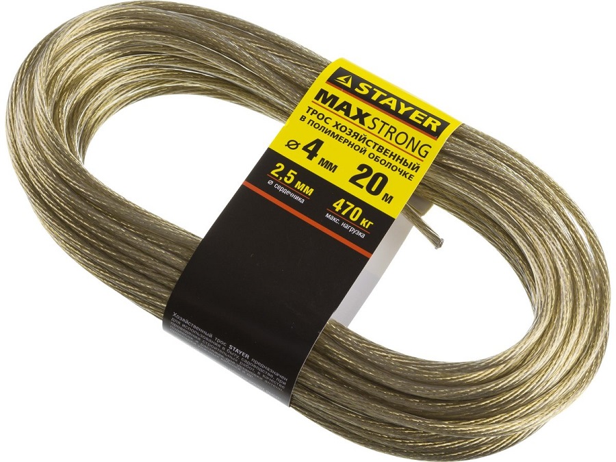 Трос стальной в полимерной оболочке 4 мм (20 м) STAYER
