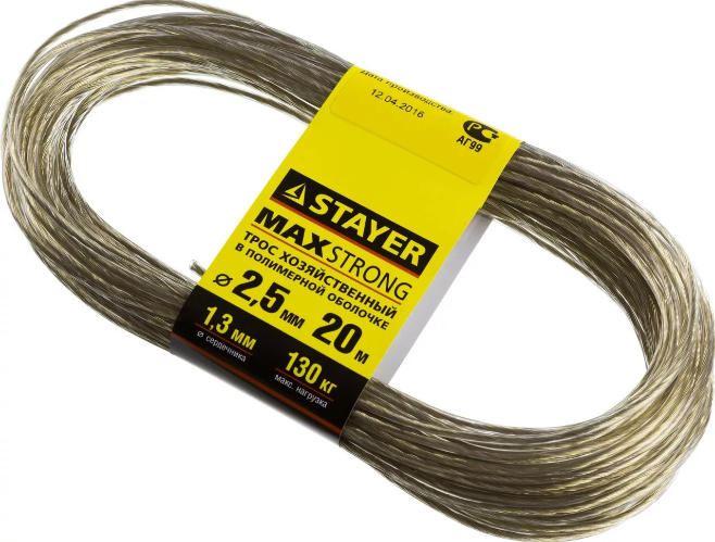 Стальные тросы STAYER изготавливаются из высокопрочных материалов и проходят непрерывный контроль качества на всех этапах производства.