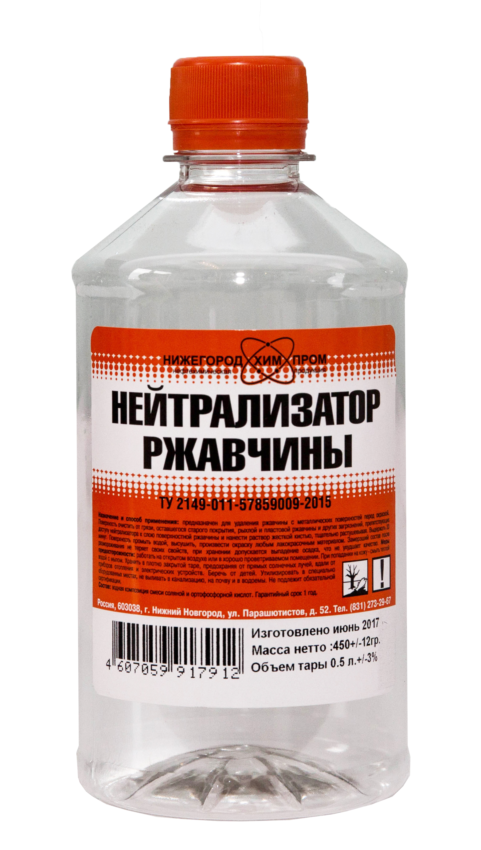 Предназначен для удаления ржавчины с металлических поверхностей перед окраской. Поверхность очистить от грязи, оставшегося старого покрытия, рыхлой и пластовой ржавчины и других загрязнений, препятствующих доступу нейтрализатора к слою поверхностной ржавчины и нанести раствор жесткой кистью, тщательно растушевывая. Выдержать 30 минут. Поверхность промыть водой, высушить, произвести окраску любым лакокрасочным материалом. Замерзший состав после размораживания не теряет своих свойств, при хранении допускается выпадение осадка, что не ухудшает качество.