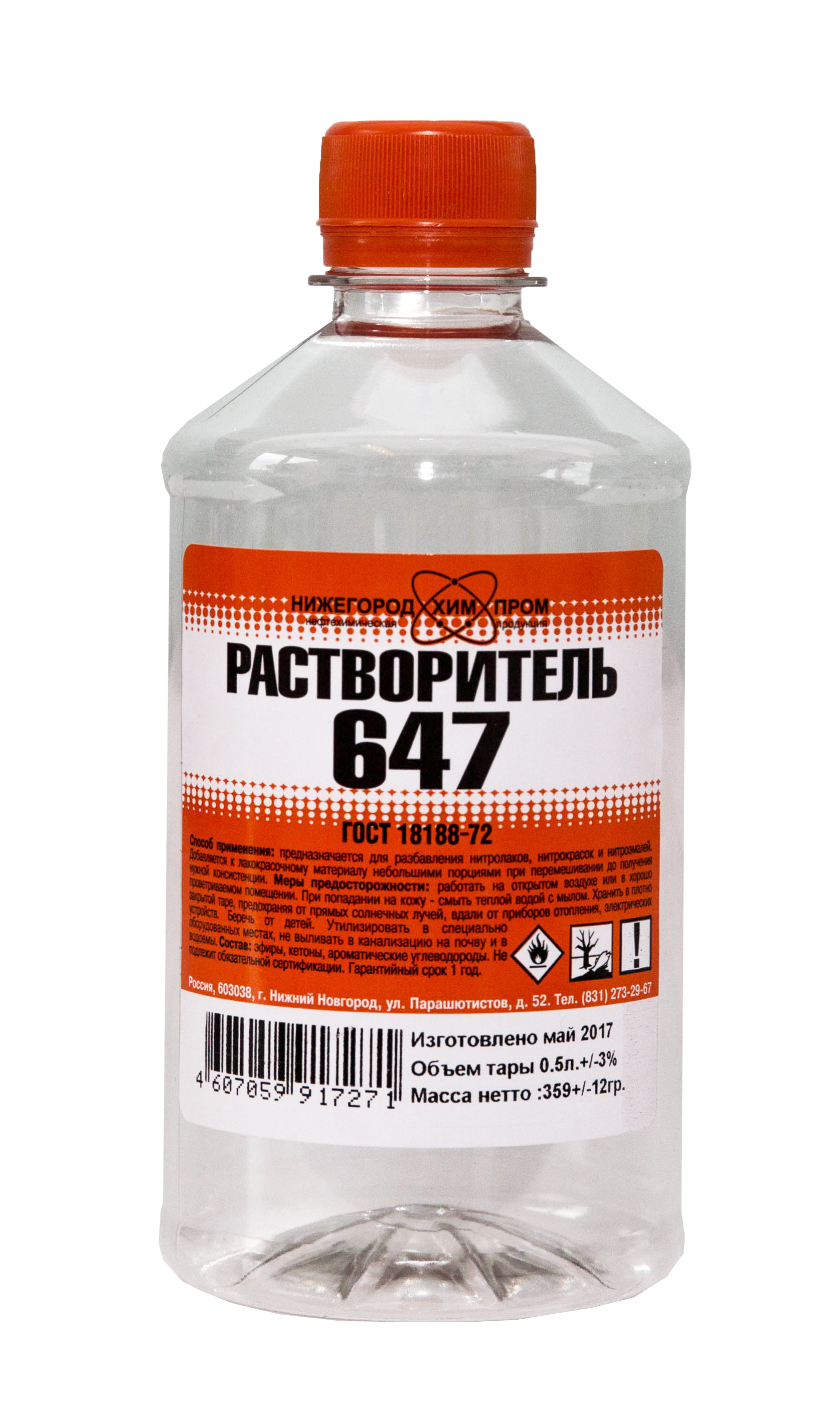 Растворитель 647 предназначен для разбавления нитроэмалей, нитролаков для легковых автомобилей.