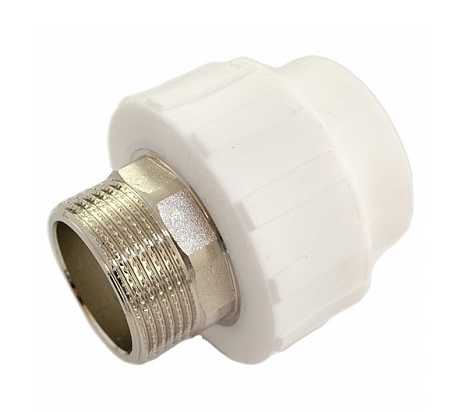 Комбинированный полипропиленовый фитинг. Используется для соединения полипропиленовой трубы и элемента системы с дюймовым резьбовым соединением. Латунные части производятся методом горячего штампования, пластиковые - методом литья под давлением.