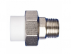 Муфта комбинированная разъёмная (американка) с наружной резьбой — комбинированный полипропиленовый фитинг. Представляет собой разъемное соединение между металлической и пластиковой трубой. Латунные части производятся методом горячего штампования, пластиковые - методом литья под давлением.