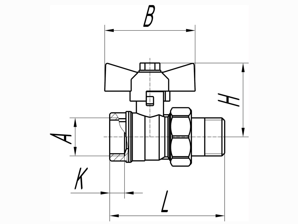 ---Кран шаровой 1/2" (15 мм) в/н бабочка со сгоном ГАЛЛОП Стандарт