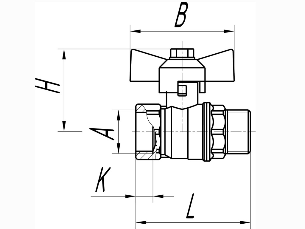 Кран шаровой 1/2" (15 мм) в/н бабочка ГАЛЛОП Стандарт