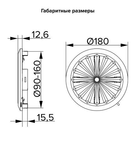 ---Решетка вытяжная с антимаскитной сеткой, круглая, с фланцем, регулируемая белая 90-160 мм ERA