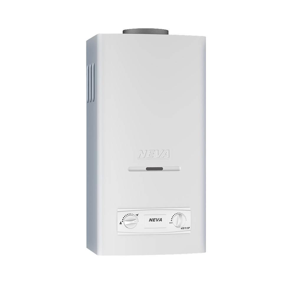 Водонагреватель NEVA-4511Р оснащен экологичным и долговечным медным теплообменником без сплавов олова и свинца, изготовленным по инновационной технологии пайки в защитной среде. Оснащен 5 системами безопасности, автоматически выключающими аппарат при любых сбоях в работе: при отсутствии подачи воды или газа, при нагреве воды свыше 90°С. Колонка присоединяется к стандартной системе дымоотводов в квартире, и имеет производительность 11 л/мин. Этого достаточно для одной-двух точек водоразбора. В Неве 4511Р можно регулировать мощность горелки, тем самым регулировать температуру воды на выходе. Розжиг газовой колонки происходит от пьезо-элемента.