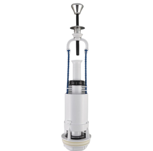 Комплект штоковой смывной арматуры Уклад АБ 66.56.14.3 предназначен для наполнения бачка водой и подачи её на смыв в унитаз. В данной модели предусмотрен один режим смыва всем рабочим объёмом. Пуск воды происходит при вытягивании управляющей ручки наверх. После смыва сливной клапан закрывается и происходит наполнение бачка до установленного уровня.