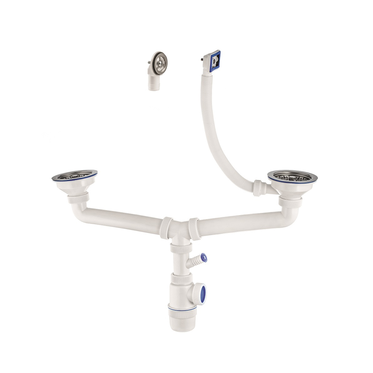 Сифон для кухонной мойки с двумя чашами 114 мм с переливом и отводом VIRPLAST