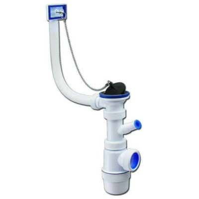 Сифон для кухонной мойки с квадрат переливом, отводом для стиральной маш Элит 70 мм 1 1/2" Вирпласт