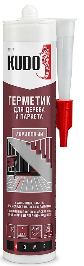 Высококачественный однокомпонентный акриловый пластоэластичный герметик KUDO® предназначен для герметизации и затирки стыков при укладке паркета, ламината и пробковых покрытий, заполнения щелей при монтаже плинтусов, наличников, деревянных оконных рам и подоконников. Применяется для уплотнения соединительных швов при отделке вагонкой и монтаже перегородок.