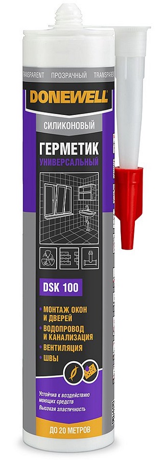Высококачественный универсальный силиконовый герметик DONEWELL с системой отверждения ацетокси применяется в общих бытовых, ремонтных и строительных работах. Предназначен для уплотнения, соединения и защиты непористых поверхностей от проникновения воздуха и влаги; для герметизации оконных рам, дверных коробок, кабельных каналов; герметизации стыков при монтаже сантехнического оборудования, систем кондиционирования воздуха; защиты полиуретановой монтажной пены от УФ- лучей.