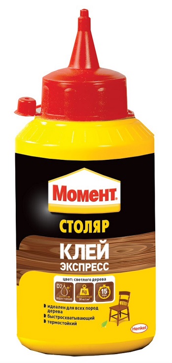 Момент Столяр Клей-Экспресс универсальный водостойкий клей на основе водной дисперсии, идеально подходящий для всех пород дерева.
