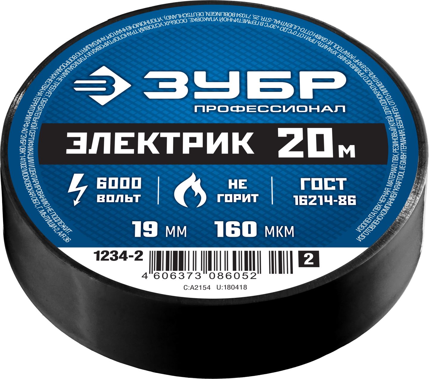 Изолента ПВХ 19 мм х 20 м 160 мкм черная ЗУБР Профи
