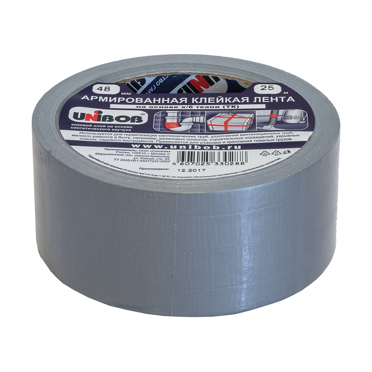 Лента клеящая армированная 48 мм х 25 м металлик UNIBOB