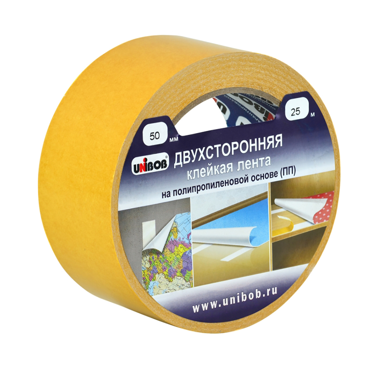 ---Лента клеящая двусторонняя полипропиленовая 50 мм х 25 м UNIBOB