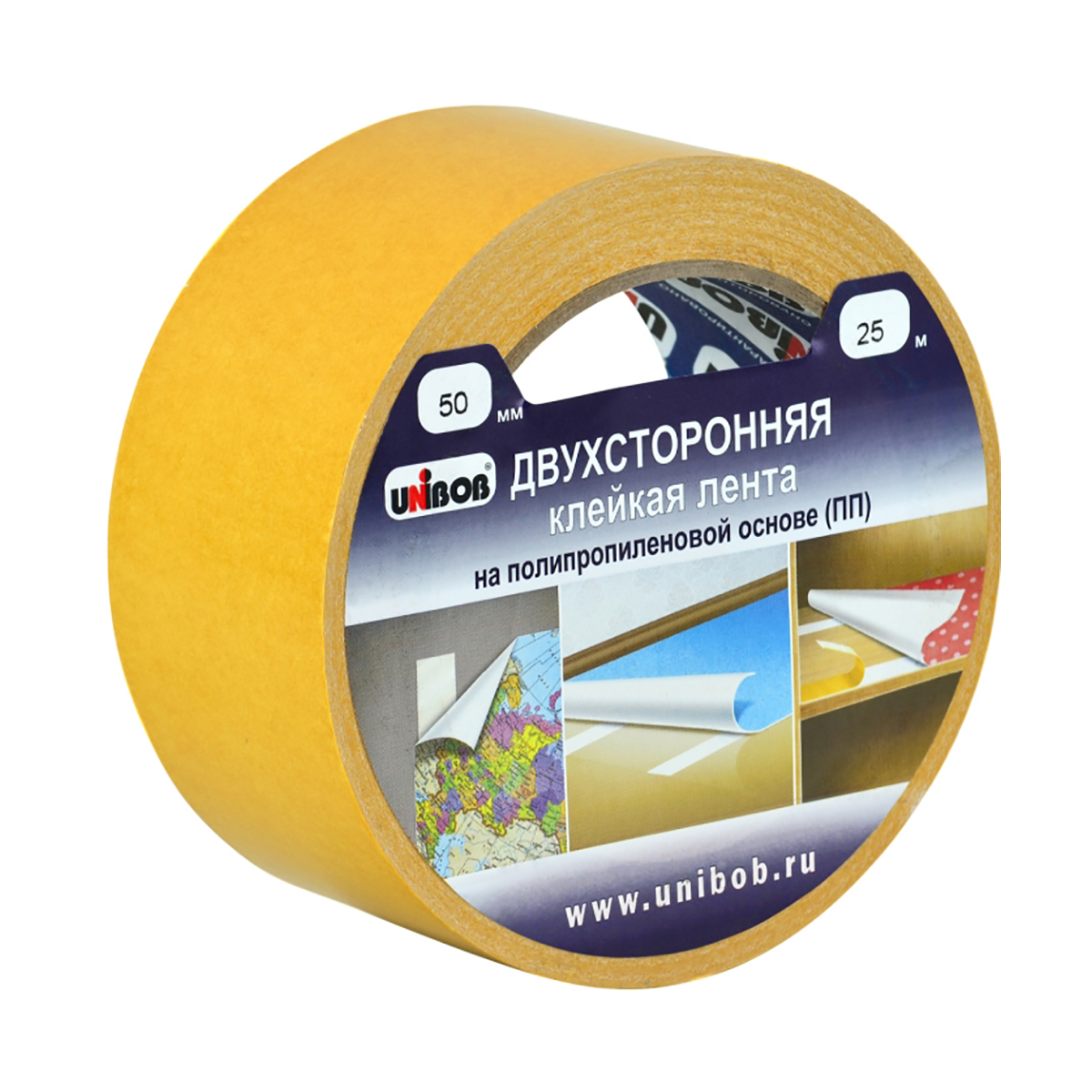 ---Лента клеящая двусторонняя полипропиленовая 38 мм х 10 м UNIBOB