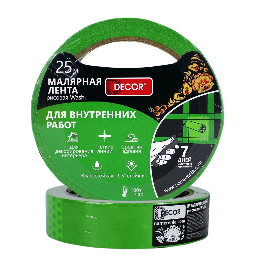 Скотч малярный для внутренних работ 38 мм х 25 м DECOR
