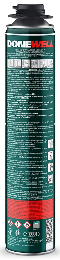Особенностью всей линейки пены DONEWELL® является низкое вторичное расширение, что позволяет эффективно контролировать расход пены