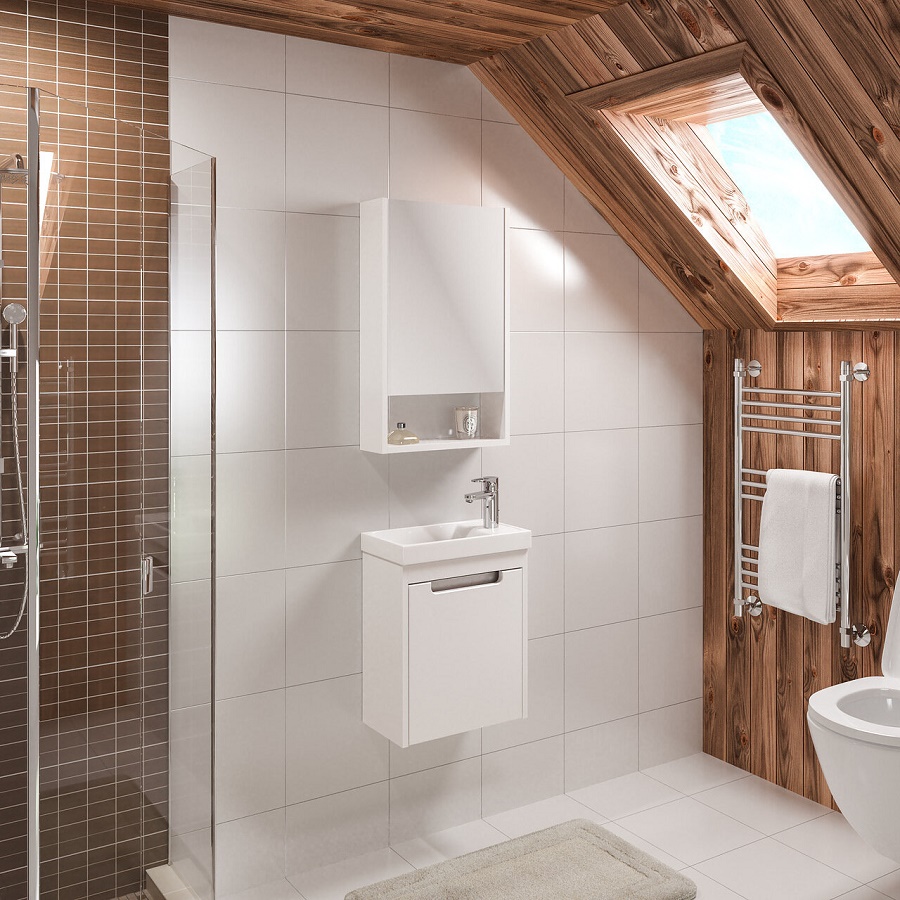 Тумба Микра 40 белая подвесная с раковиной Соmо 40 RUNO