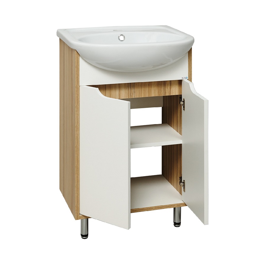 ---Тумба 500 мм напольная Эко лиственница с раковиной Уют 50 RUNO