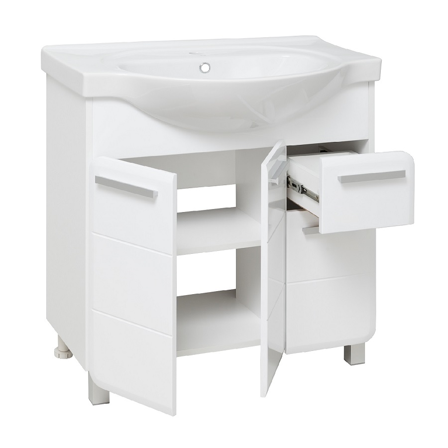Тумба 800 мм напольная Эрика белая с раковиной Erica 80 RUNO