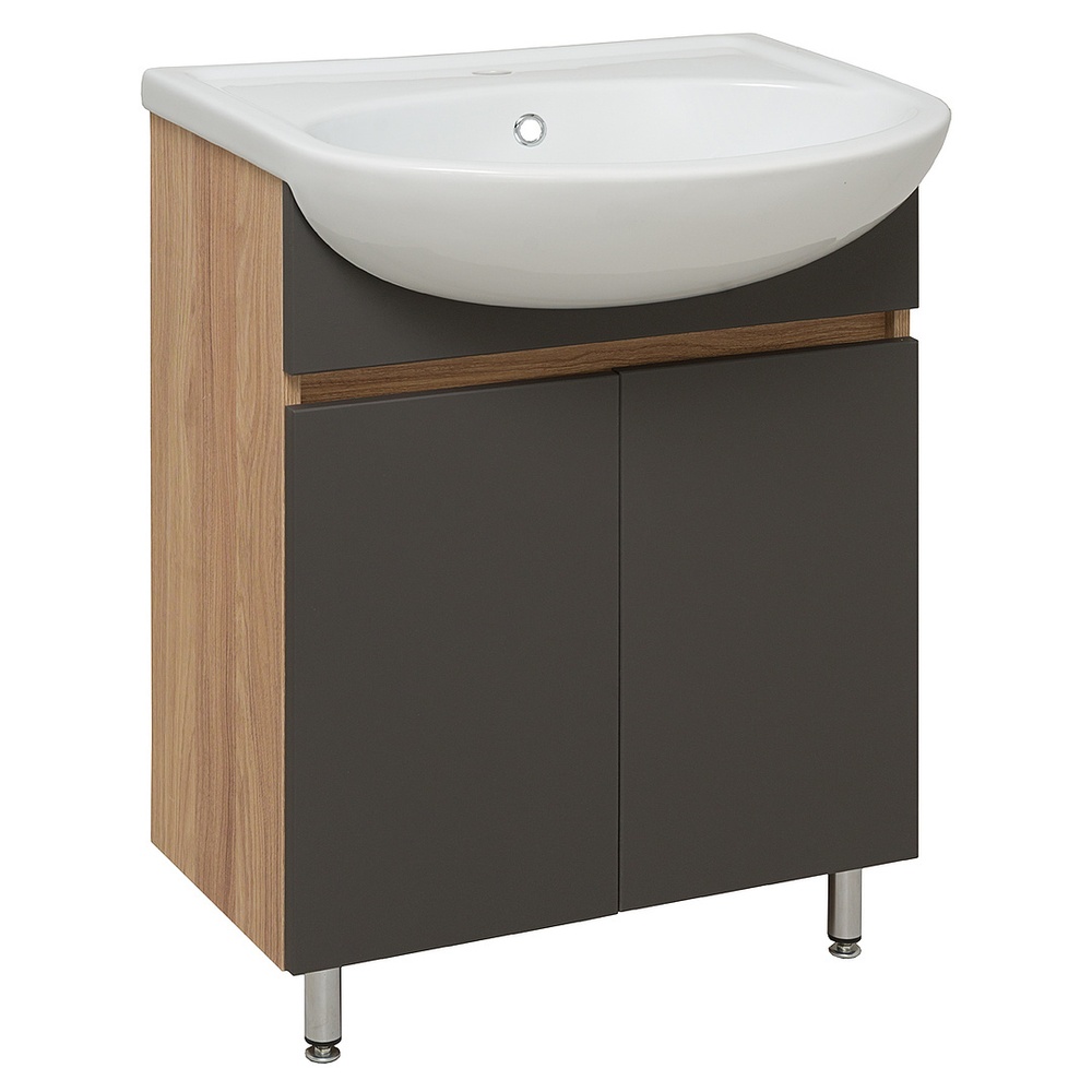 ---Тумба 600 мм напольная Лада графит/лиственница с раковиной Уют 60 RUNO