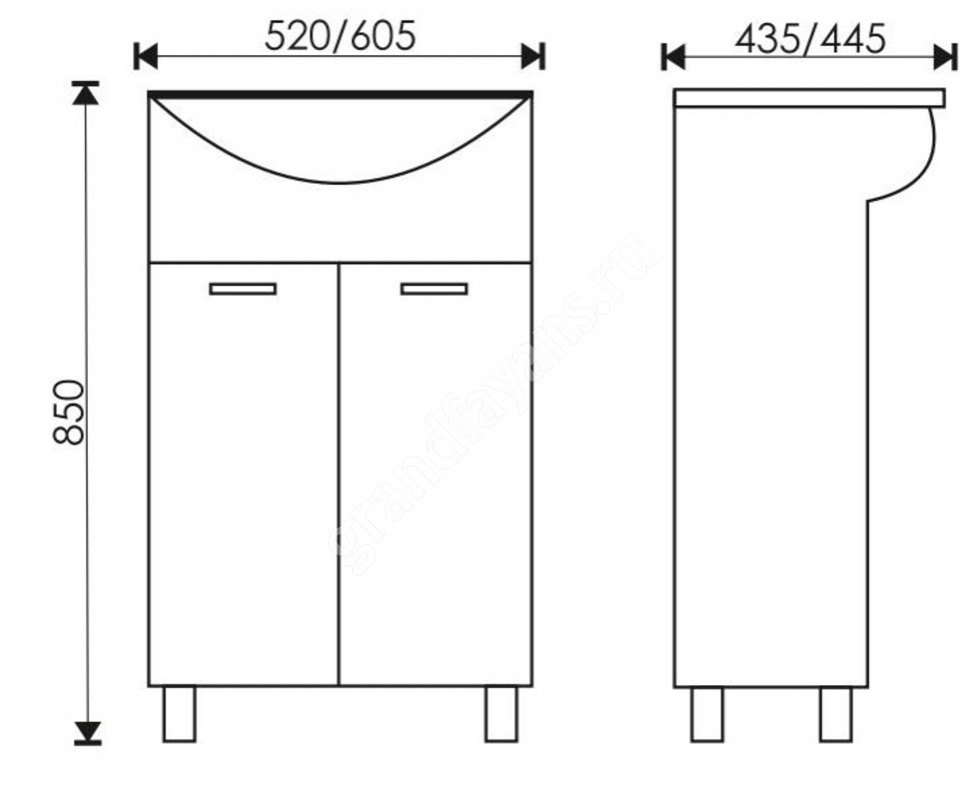 ---Тумба 500 мм напольная Ника белая с раковиной Уют 50 EVAGOLD