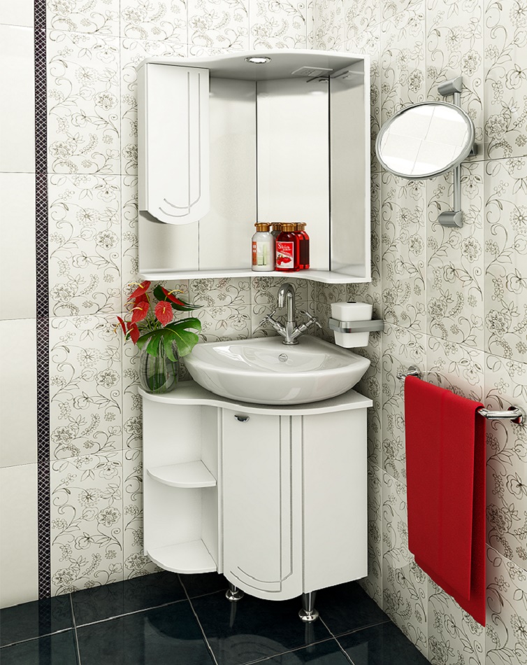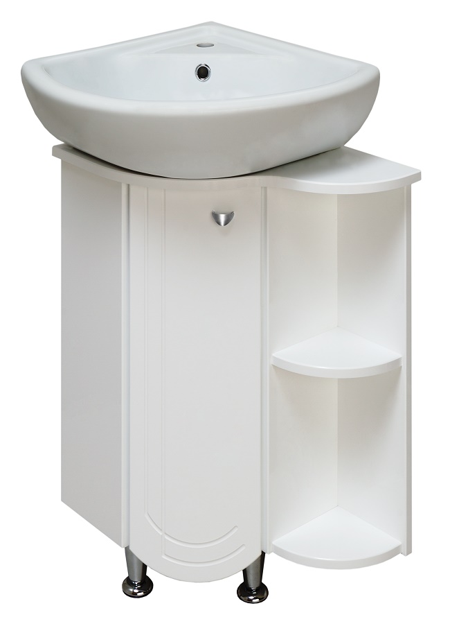 ---Тумба Бис 55 белая правая угловая с раковиной Элегия 46 RUNO
