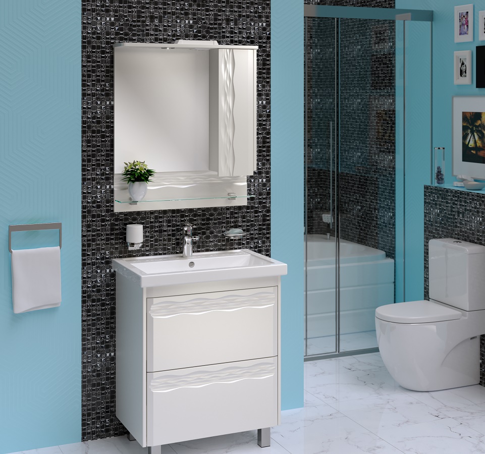 Тумба Вега 70 белая с раковиной Фостер 70 RUNO