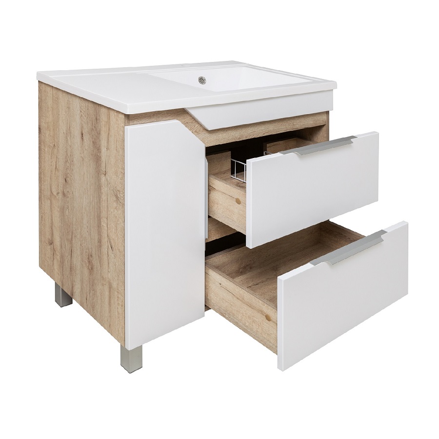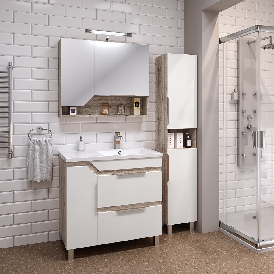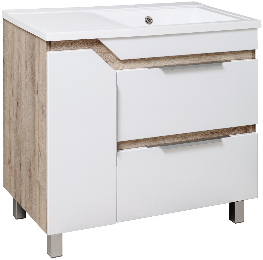 ---Тумба Родос 85 белая левая с раковиной Gamma 85 c левым крылом RUNO